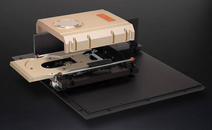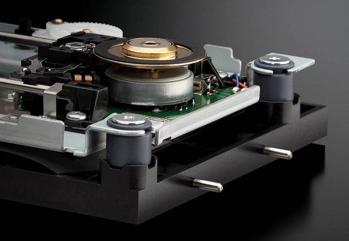 Accuphase的拾讯组合,又是一个大制作。或者你会问,真的需要如此重料吗?别家简简单单,一样可以达到拾讯的目的!不错,目的是达到了,但还要顾及准确程度!这就非有一个制作精密的机械部分去配合了。Accuphase的这个组合,最瞩目的是一个桥状装置,横跨整个拾讯机械的顶部,给予它最高的稳定性,以防止内、外的震动。这座[桥」以往是灰黑色的,现在也转为金色,更为耀眼了!这座拾讯组合的承脚也很讲究,4只脚却分别用两种物料去做,以达最理想的吸震目标;Accuphase对其制作细节的认真程度,可见一斑!