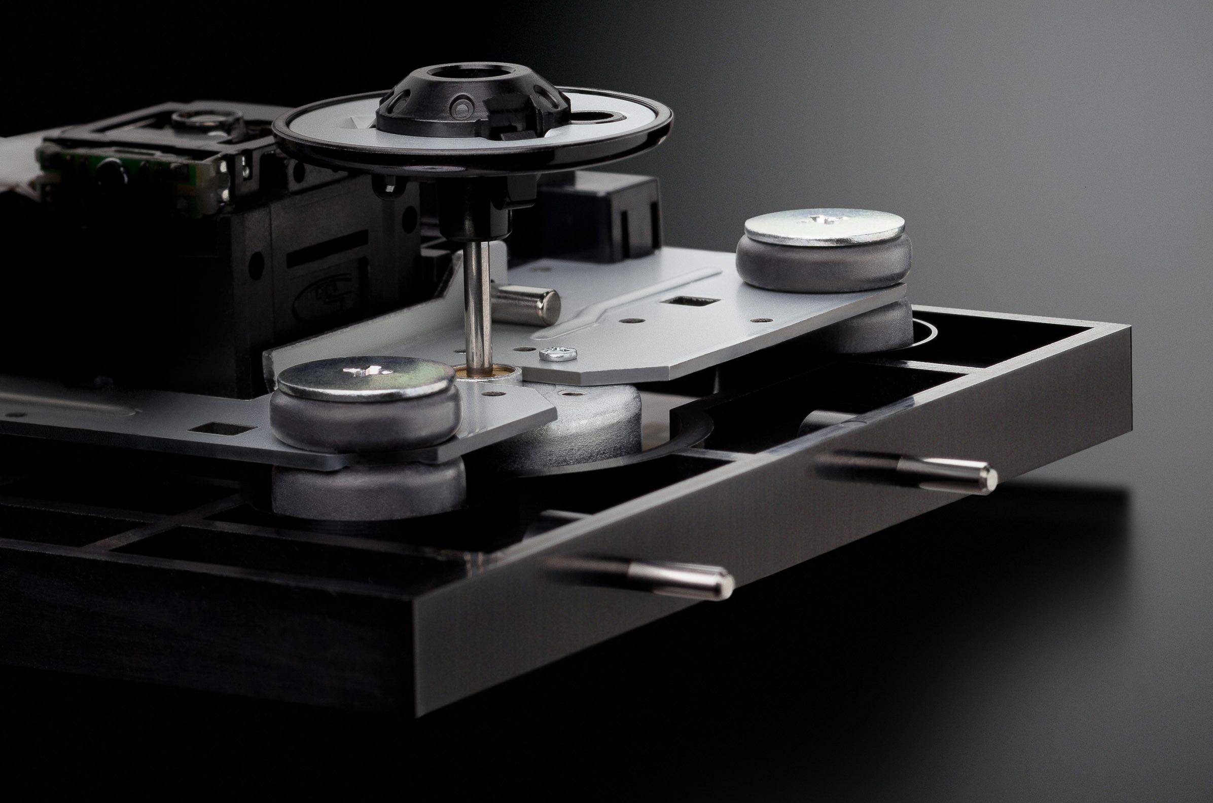 使用钕磁铁作为吸盘磁铁。8极磁轭可将唱盘和光盘均匀且牢固地固定,从而减少了表面晃动。