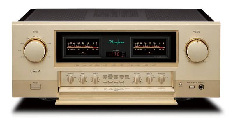音响系统总离不开功率放大器,过往我们常听到放大器种类孰优孰劣的争论。主打纯甲类(Class A)和甲乙类(Class AB)放大器的Accuphase金嗓子,在众多音响发烧友心中享有较高的地位。无论在外形、内涵还是声音价值上,Accuphase吸引一众爱好者对其如痴如醉。根据很多发烧友的总结,Accuphase的纯甲类放大器通常以温暖甜润的声音沁人心脾,也就是说,低失真就是Accuphase的致胜之道。Accuphase有太多出色的纯甲类放大器出品,而E-700则是其最新款的合并放大器。