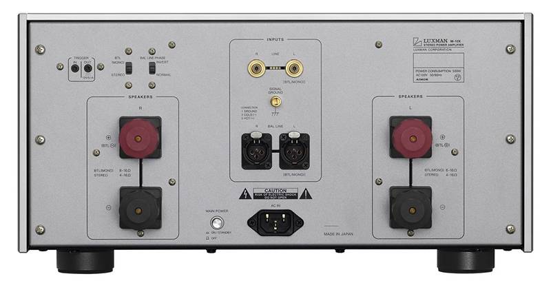 必得温馨提示!如使用XLR 端子接驳M-10X 的话,得当心相位配对,因Luxman 之平衡接驳标准为1 GROUND / 2 COLD(-) / 3 HOT(+)模式,如音源或前级非同门产品,则有可能出现刚好相反的1 GROUND / 2 HOT(+) / 3 COLD(-)情况。倘数码音源或前级设有相位切换功能,那当然直接使用即成。若没有,只需花点功夫,将喇叭线接扩音机或接喇叭(其中一边)的一正(+)、一负(-)对调接驳亦可。