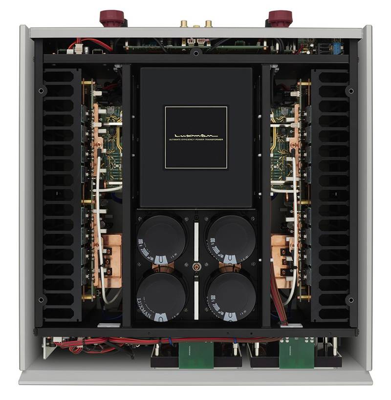 M-10X 的压倒性功率及驱动能力背后,当然少不了强大的电源供应组件的支援。采用EI 型高稳压电源变压器,容量达1,250VA,瞬间更可达最大2,500VA,并选用有利紧密缠绕以减少线与线之间虚位,兼且节省空间的扁平铜线绕制。这可有效降低线路电容值,提高耦合力并稳定磁场,从而获得不随任何负载波动而跌宕的强大性能。此外,于Luxman 一贯的高稳定电源装置上,再配备新开发的滤波电容器,两声道各用上4 枚20,000uF。